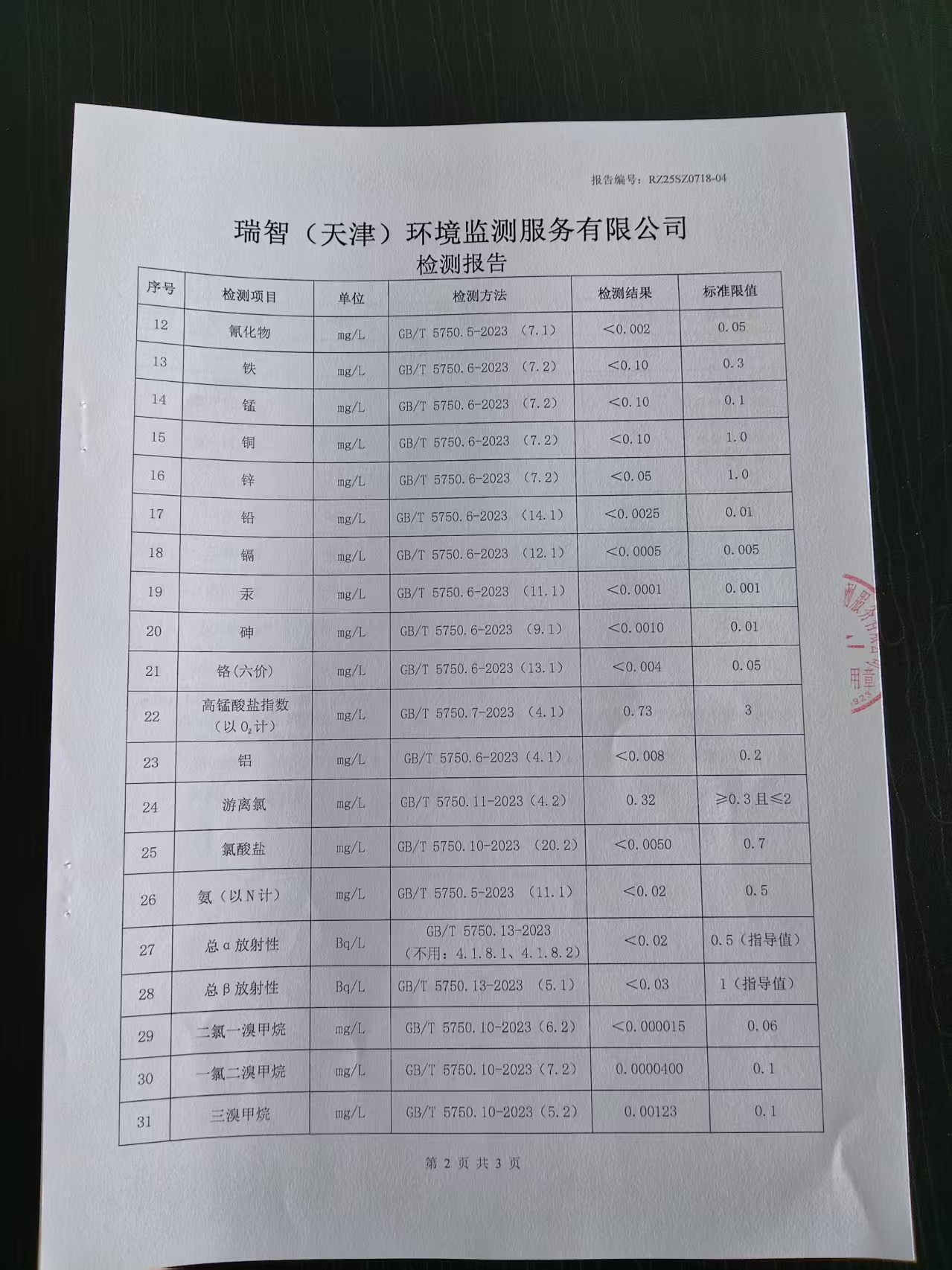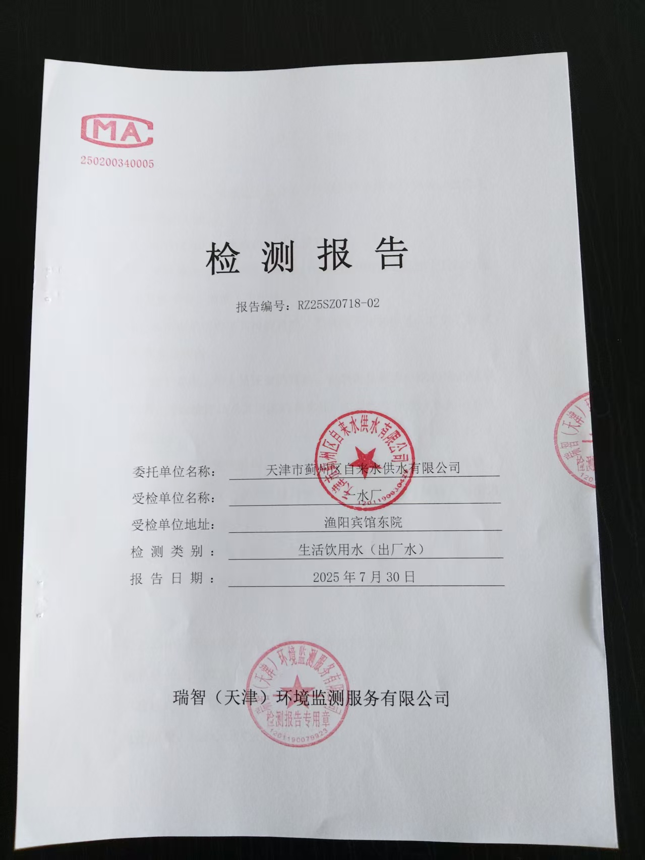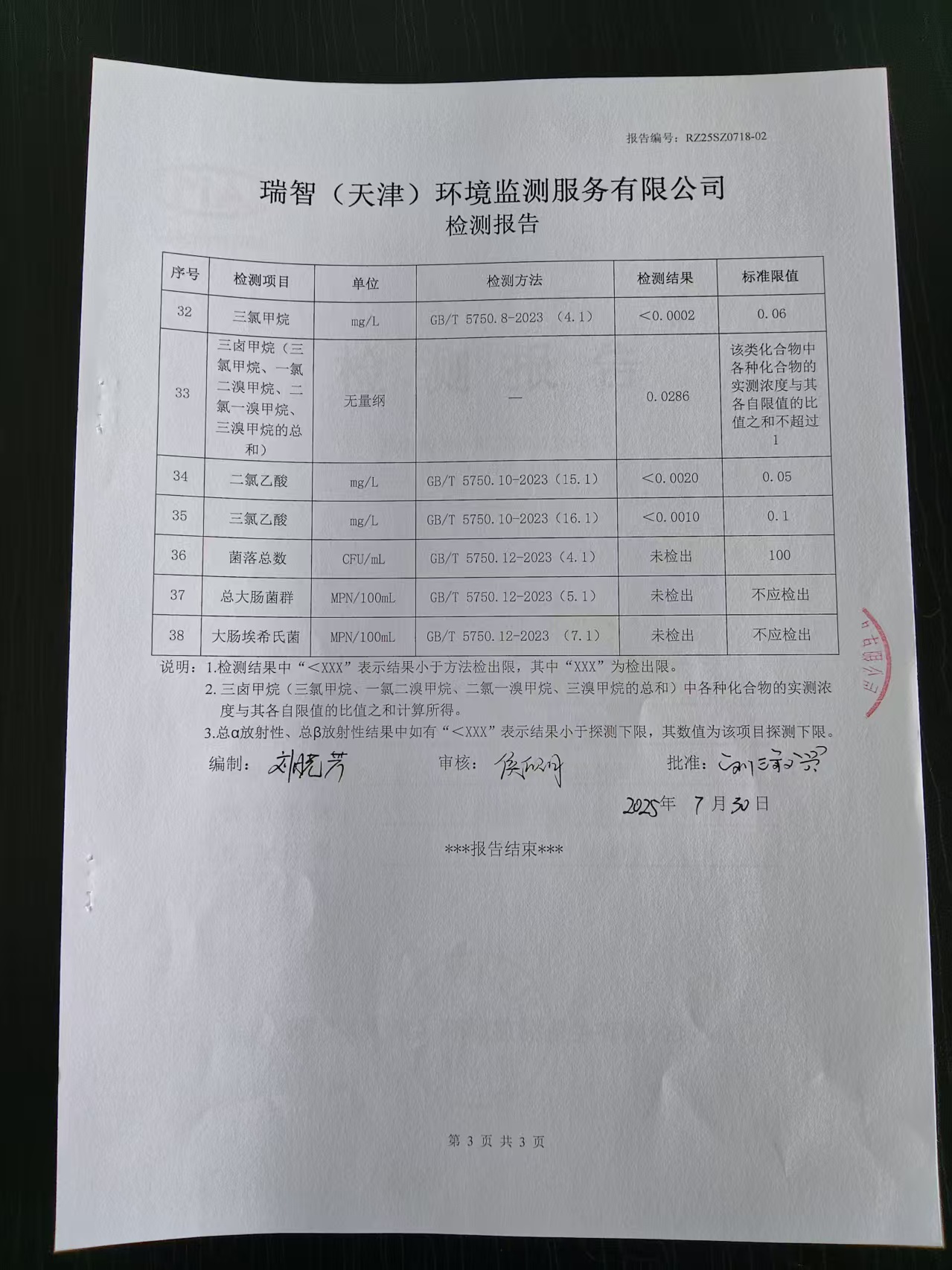 2025年7月份水質(zhì)檢測(cè)報(bào)告